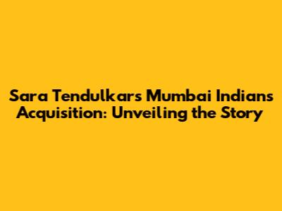 Sara Tendulkar's Mumbai Indians Acquisition: Unveiling The Story