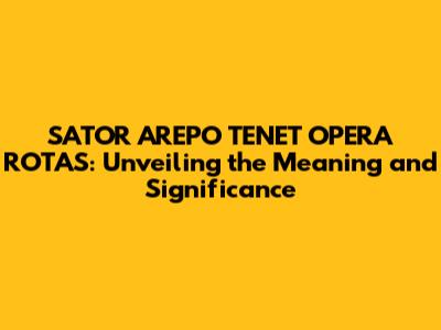SATOR AREPO TENET: Meaning And Significance