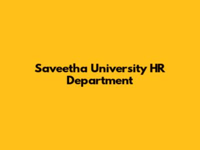Saveetha University HR: Your Go-To Guide