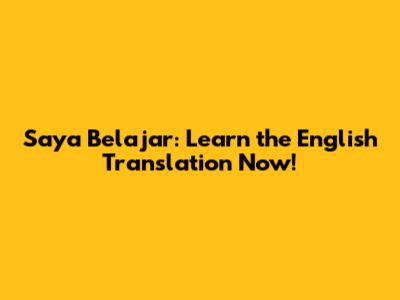 Saya Belajar: Learn The English Translation Now!