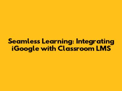 Seamless Learning: Integrating IGoogle With Classroom LMS