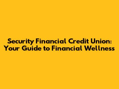 Security Financial Credit Union: Your Guide To Financial Wellness
