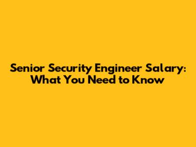 Senior Security Engineer Salary: What You Need To Know