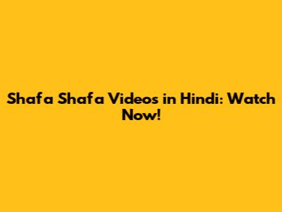 Shafa Shafa Videos In Hindi: Watch Now!