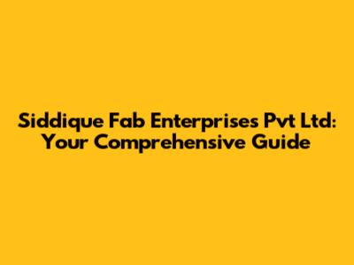 Understanding Siddique Fab Enterprises Pvt Ltd