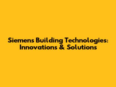 Siemens Building Technologies: Innovations & Solutions