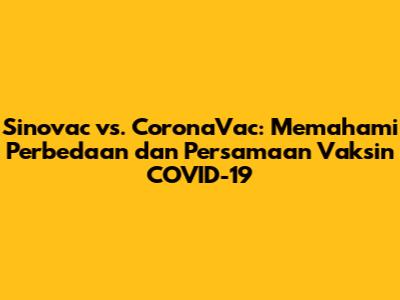 Guys, banyak banget nih pertanyaan yang muncul seputar vaksin COVID-19, khususnya soal Sinovac dan CoronaVac. Beberapa dari kalian mungkin masih bingung, apakah kedua vaksin ini sama saja? Atau ada perbedaan mendasar yang perlu diketahui? Nah, dalam artikel ini, kita bakal kupas tuntas perbedaan dan persamaan antara Sinovac dan CoronaVac, biar kalian makin paham dan nggak salah informasi. Yuk, simak!