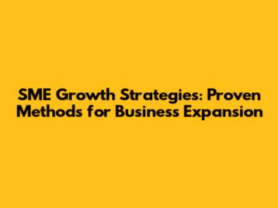 SME Growth Strategies: Proven Methods For Business Expansion