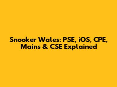 Snooker Wales: PSE, IOS, CPE, Mains & CSE Explained