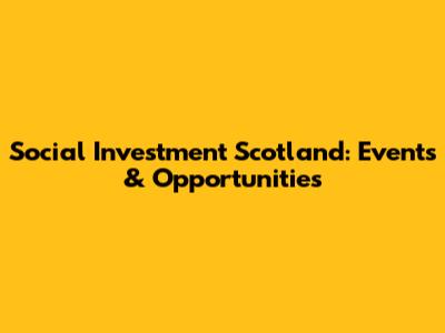 Social Investment Scotland: Events & Opportunities