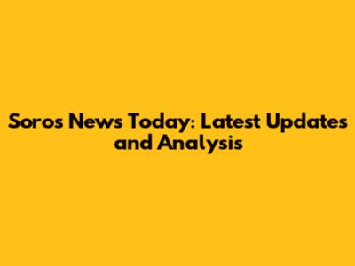 Soros News Today: Latest Updates And Analysis