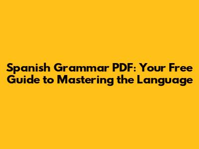 Spanish Grammar PDF: Your Free Guide To Mastering The Language
