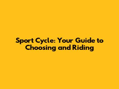 Sport Cycle: Your Guide To Choosing And Riding
