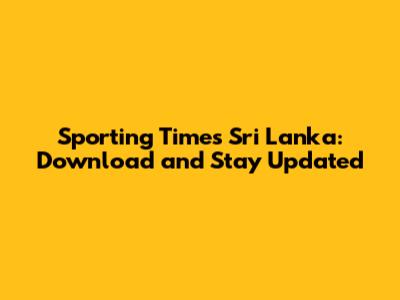 Sporting Times Sri Lanka: Download And Stay Updated
