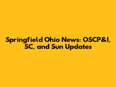 Springfield Ohio News: OSCP&I, SC, And Sun Updates