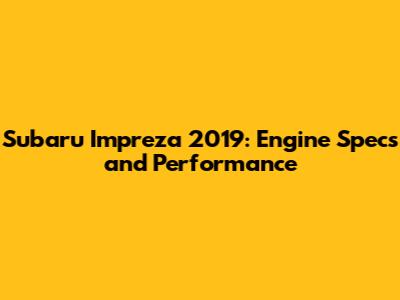 Diving Deeper: Subaru Impreza 2019 Engine Performance and Features