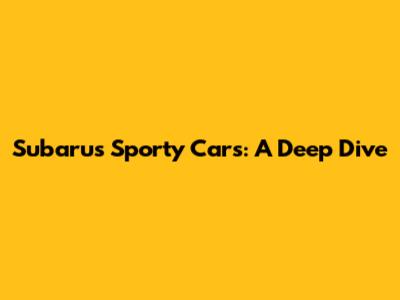 Subaru's Sporty Cars: A Deep Dive