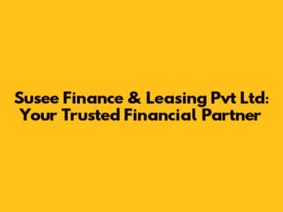 Are you looking for a reliable financial partner to help you achieve your goals? Look no further! Susee Finance & Leasing Pvt Ltd offers a comprehensive suite of financial services tailored to meet your specific needs. Whether you're a business owner seeking growth capital or an individual looking to finance a major purchase, Susee Finance is here to guide you every step of the way.