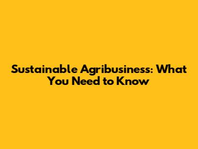 Sustainable Agribusiness: What You Need To Know