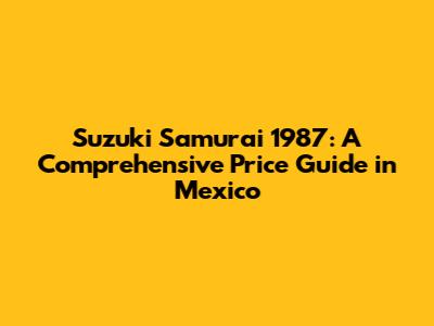 Hey guys! Let's dive into the Suzuki Samurai 1987, a true legend in the off-road world, especially here in Mexico. If you're looking to snag one of these iconic vehicles, you're probably wondering about the Suzuki Samurai 1987 price in Mexico. Well, you've come to the right place. This guide is your ultimate resource for understanding the market, what to look for, and how to find the best deal. We'll explore everything from the factors affecting the price to where you can find these classic rides. So, buckle up, and let's get started!