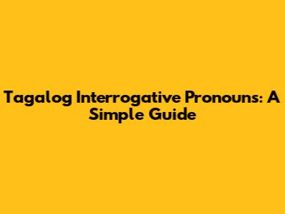 Tagalog Interrogative Pronouns: A Simple Guide