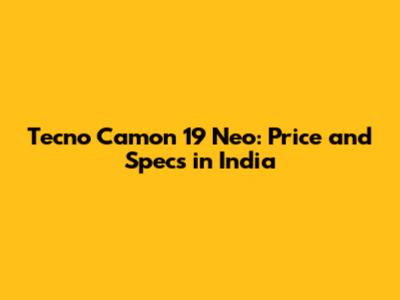 Tecno Camon 19 Neo: Price And Specs In India