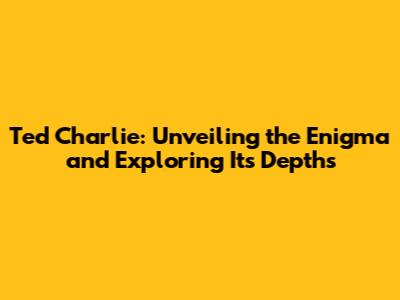 Ted Charlie: A Deep Dive Into The Mystery