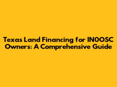 Texas Land Financing For IN0OSC Owners: A Comprehensive Guide