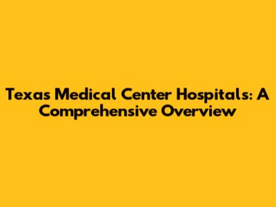 Texas Medical Center Hospitals: A Comprehensive Overview