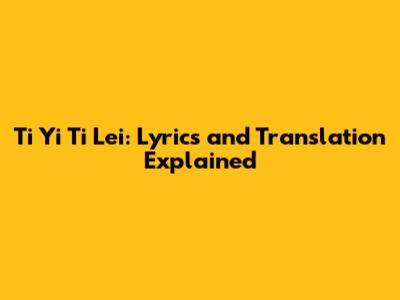 Ti Yi Ti Lei: Lyrics And Translation Explained