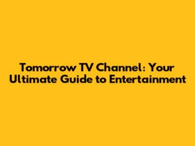 Tomorrow TV Channel: Your Ultimate Guide To Entertainment