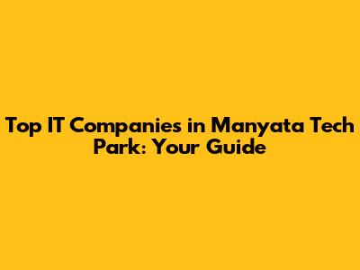 Top IT Companies In Manyata Tech Park: Your Guide