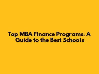 Top MBA Finance Programs: A Guide To The Best Schools