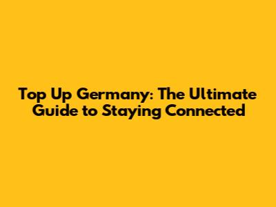 Top Up Germany: The Ultimate Guide To Staying Connected