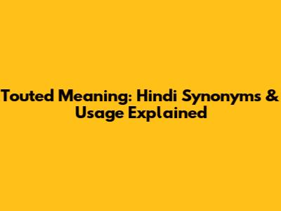 Touted Meaning: Hindi Synonyms & Usage Explained