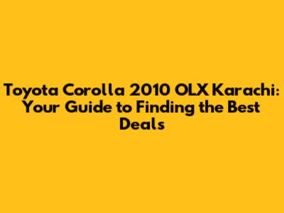 Finding a Toyota Corolla 2010 on OLX Karachi can be a rewarding experience if you approach it with the right knowledge and precautions. By following these tips, you'll be well-equipped to navigate the platform, inspect potential vehicles, negotiate the price, and ensure your safety throughout the process. Happy car hunting, and may you drive away with a fantastic deal!