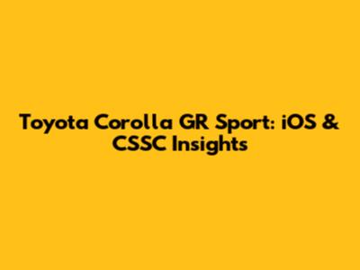 Toyota Corolla GR Sport: IOS & CSSC Insights