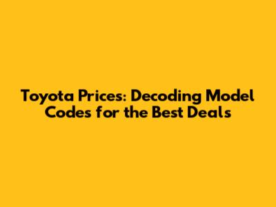 Toyota Prices: Decoding Model Codes For The Best Deals