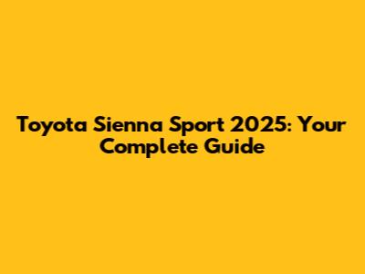 Toyota Sienna Sport 2025: What You Need To Know