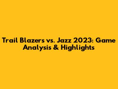 Trail Blazers Vs. Jazz 2023: Game Analysis & Highlights