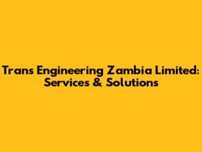 Trans Engineering Zambia Limited: Services & Solutions