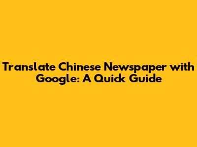 Translate Chinese Newspaper With Google: A Quick Guide