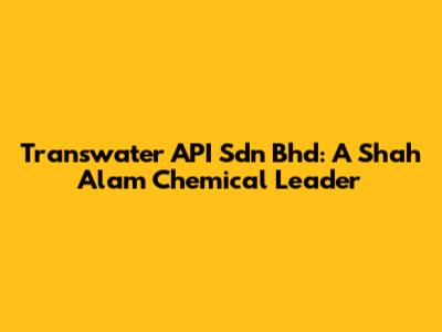 Transwater API Sdn Bhd: A Shah Alam Chemical Leader