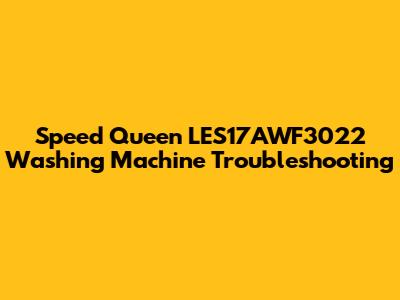 Troubleshooting Speed Queen LES17AWF3022 Washer