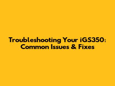 Common iGS350 Issues and How to Resolve Them