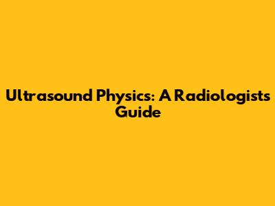 Ultrasound Physics: A Radiologist's Guide