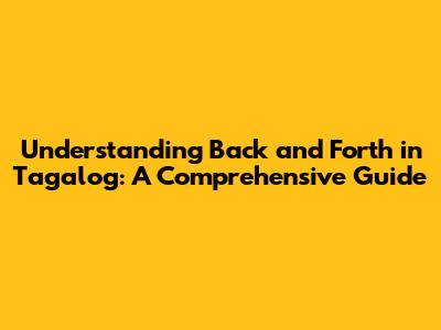 Understanding Back And Forth In Tagalog: A Comprehensive Guide