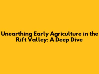The Rift Valley: A Cradle of Early Agriculture