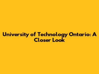 University Of Technology Ontario: A Closer Look
