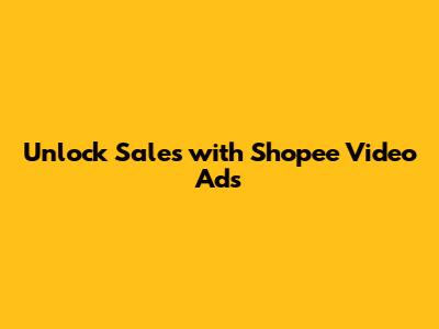 Unlock Sales With Shopee Video Ads